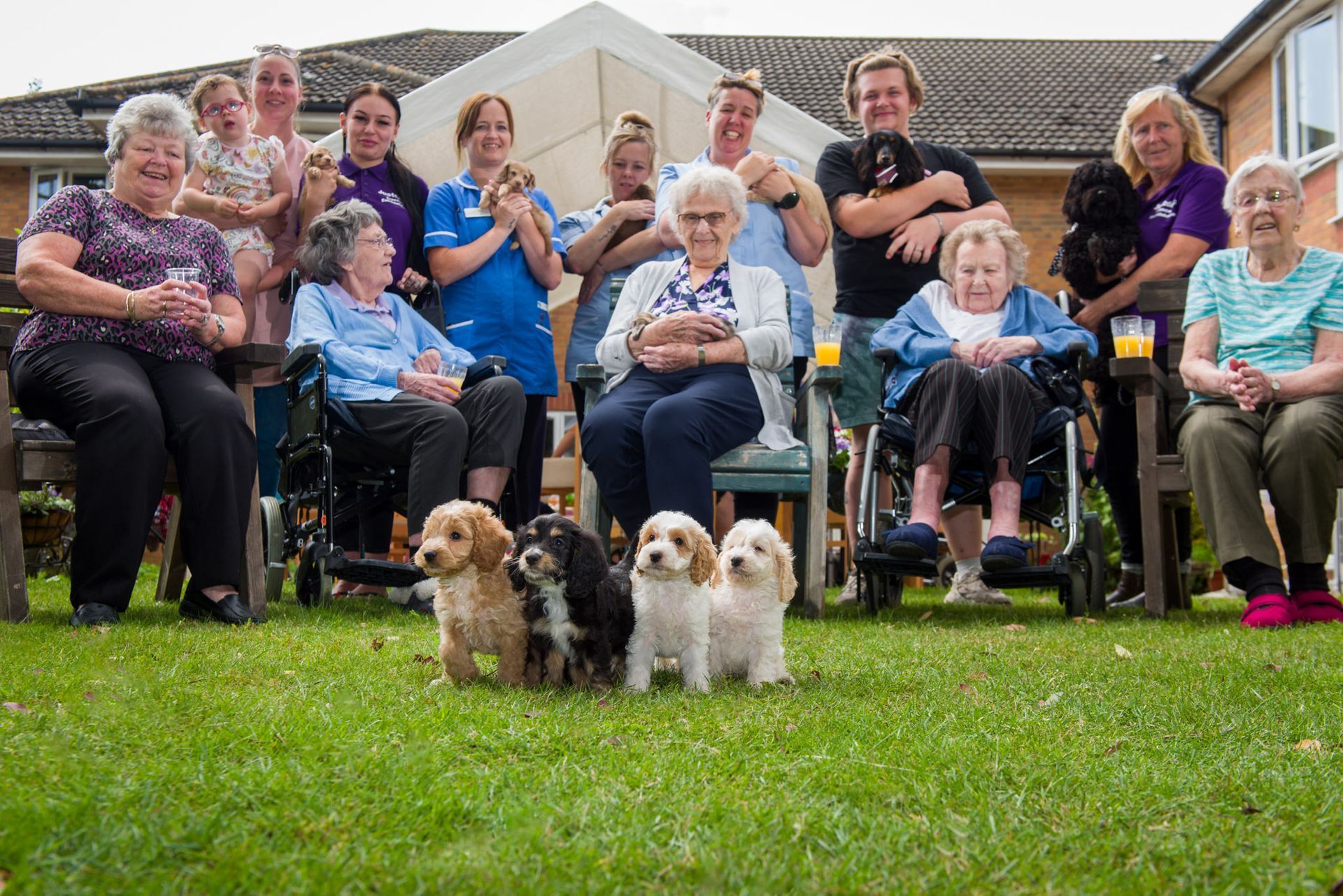 Five adorable cockapoo and dachshund puppies joined residents and their families in the home’s garden as they enjoyed a barbeque buffet and a glass of Pimm’s.